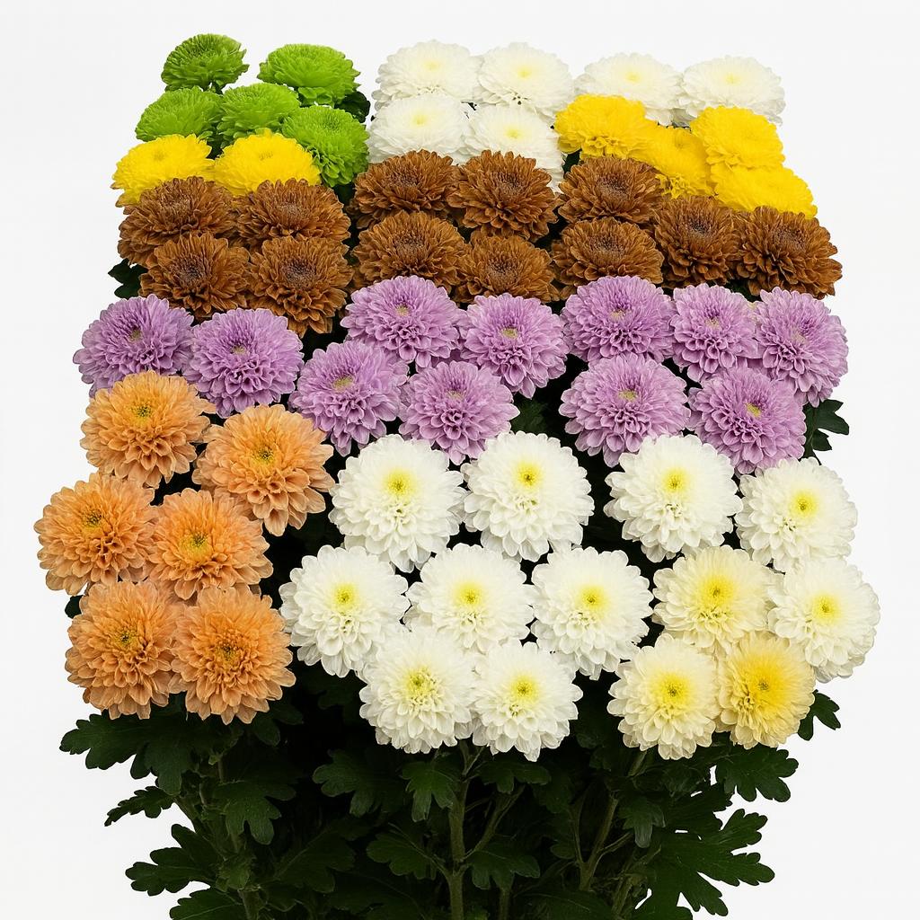 Cremon Disbuds are admired for their bold, full blooms, each stem showcasing a single striking flower. With their layered petals and cushion-like centers, Cremons share a resemblance to Spider Mums but offer a softer, more rounded look.