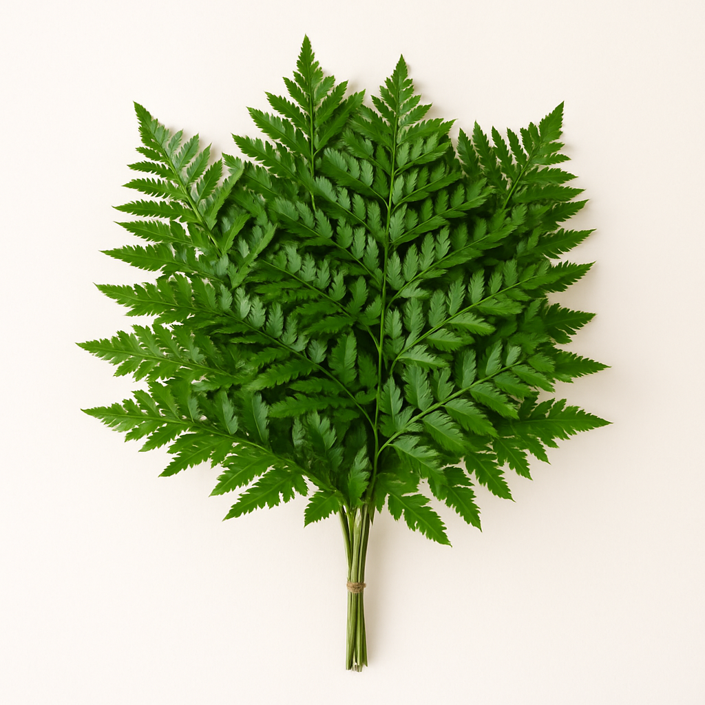 Leatherleaf Fern is one of the most popular greenery varieties, prized for its sturdy triangular fronds and glossy deep-green foliage. Its versatile shape and long-lasting freshness make it a staple filler for floral shops, event work, and everyday arrangements.